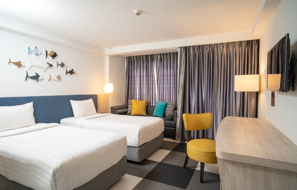 Discover the ultimate in relaxation at Krabi seabass Hotel. Our Superior Twin Room offer a tranquil retreat. Each room is equipped with contemporary décor, premium bedding, and essential amenities such as complimentary Wi-Fi, in-room entertainment, and a dedicated workspace. Experience unparalleled hospitality and make your stay memorable with us.